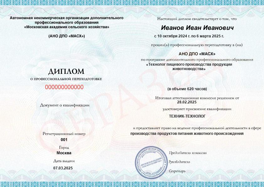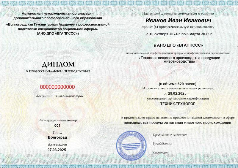 - Получите официальный диплом о переподготовке на технолога пищевого производства